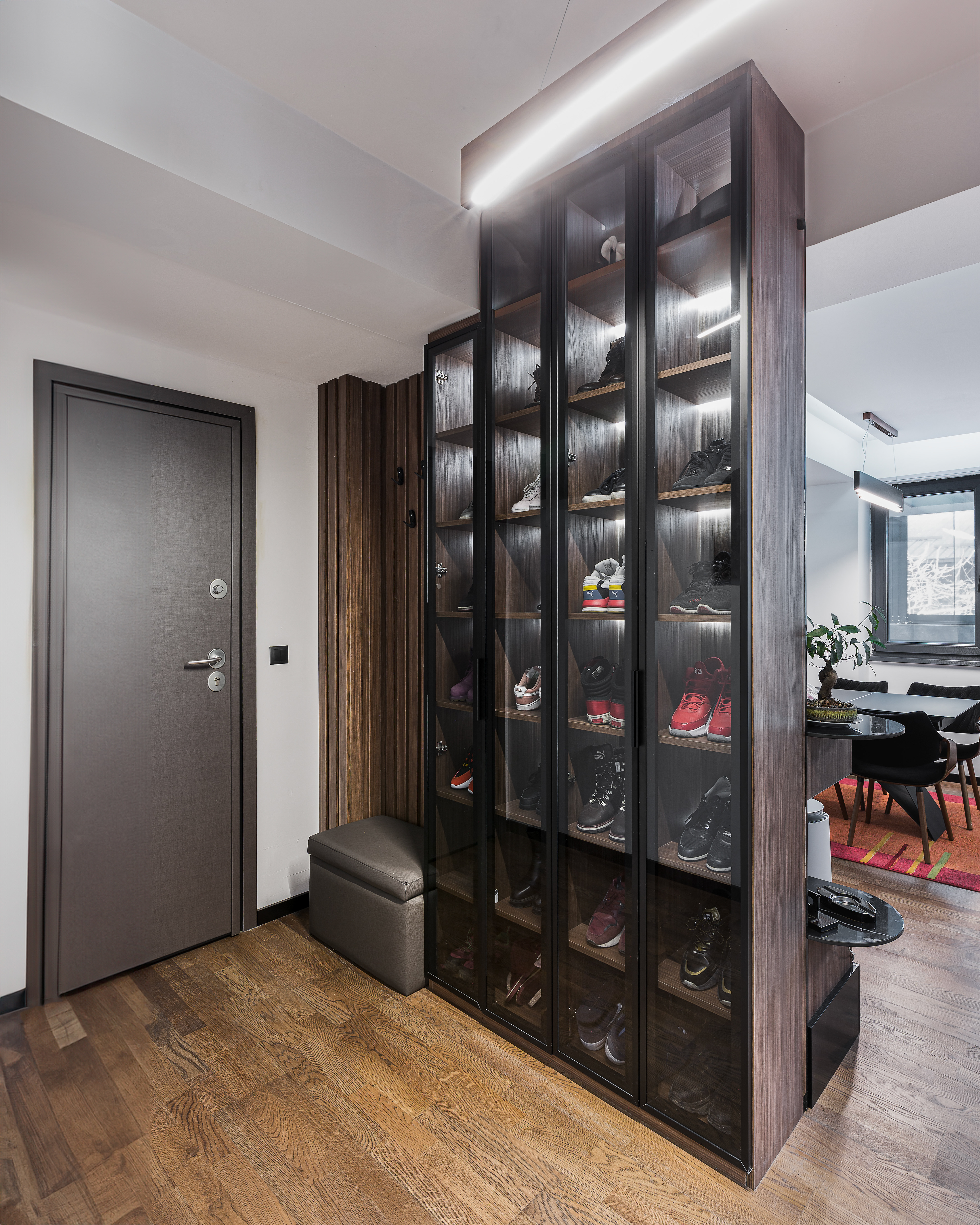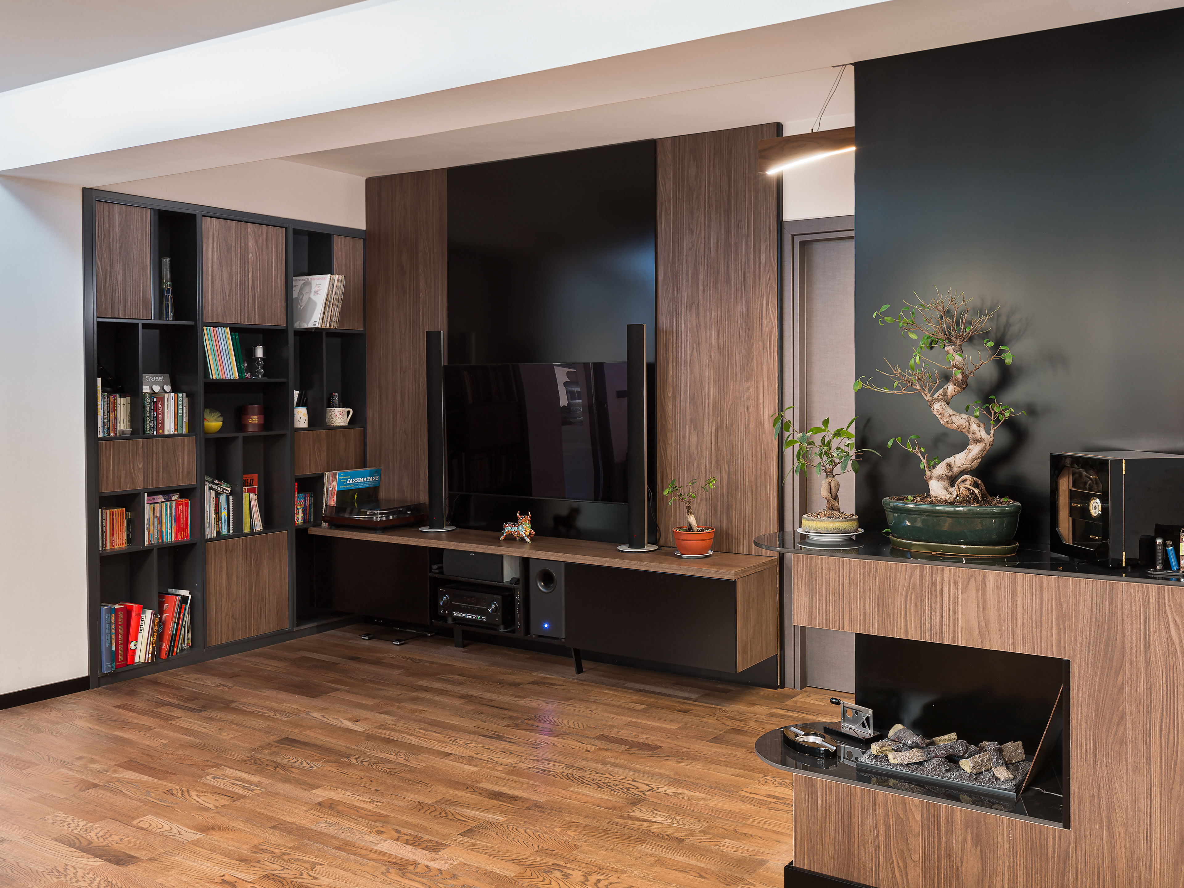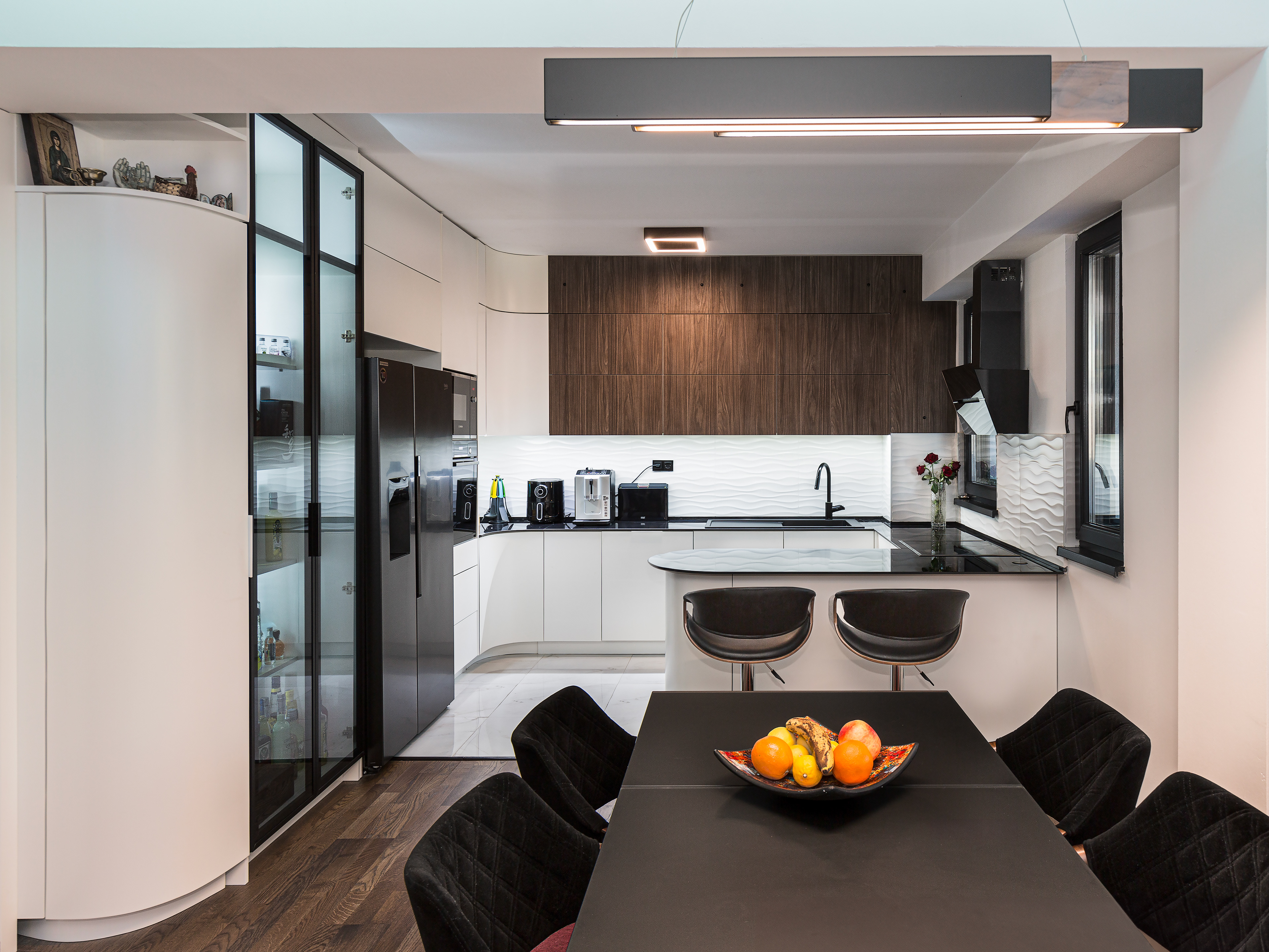 Exceptionall dark wood tones combinated with cold tones