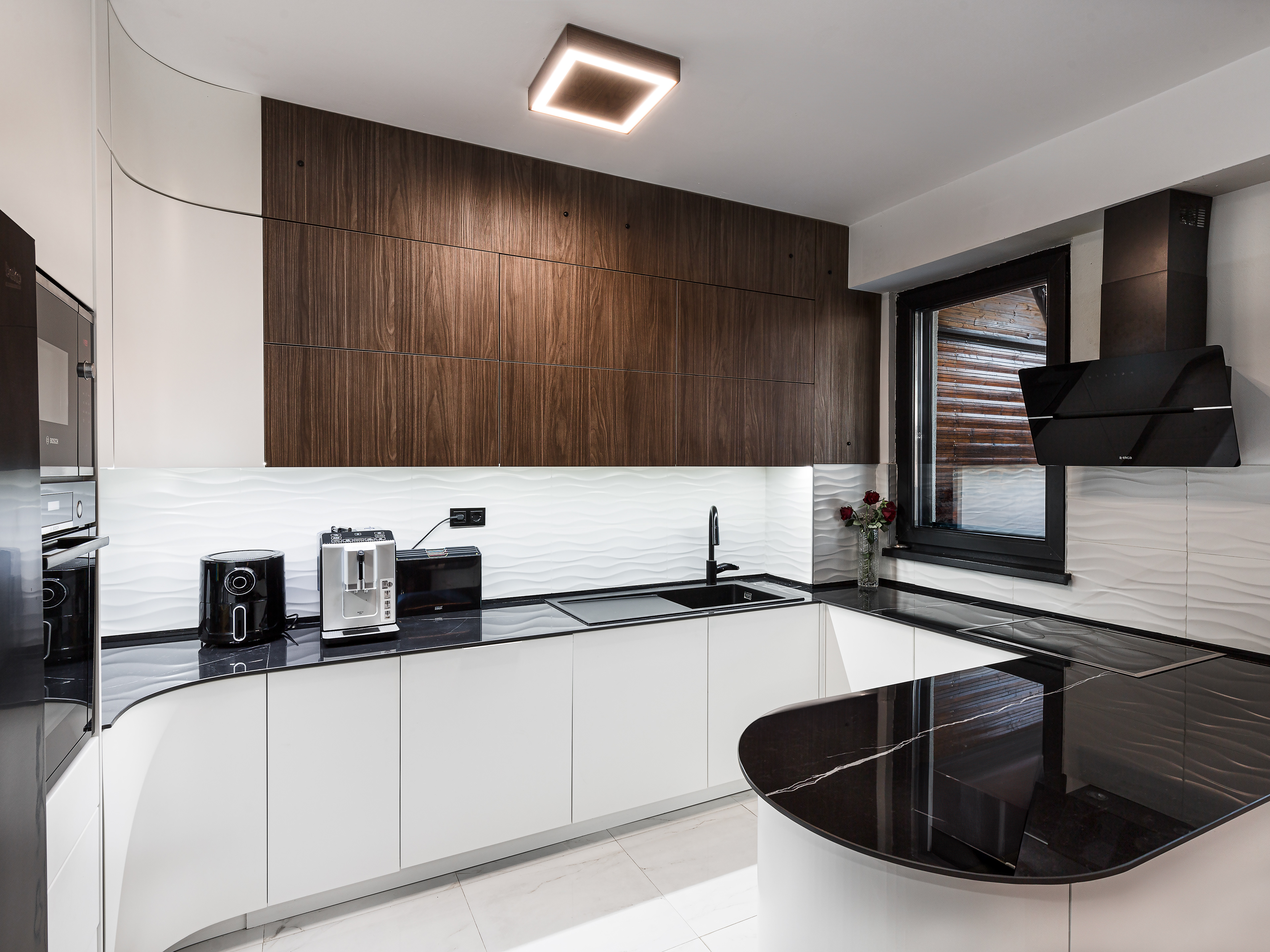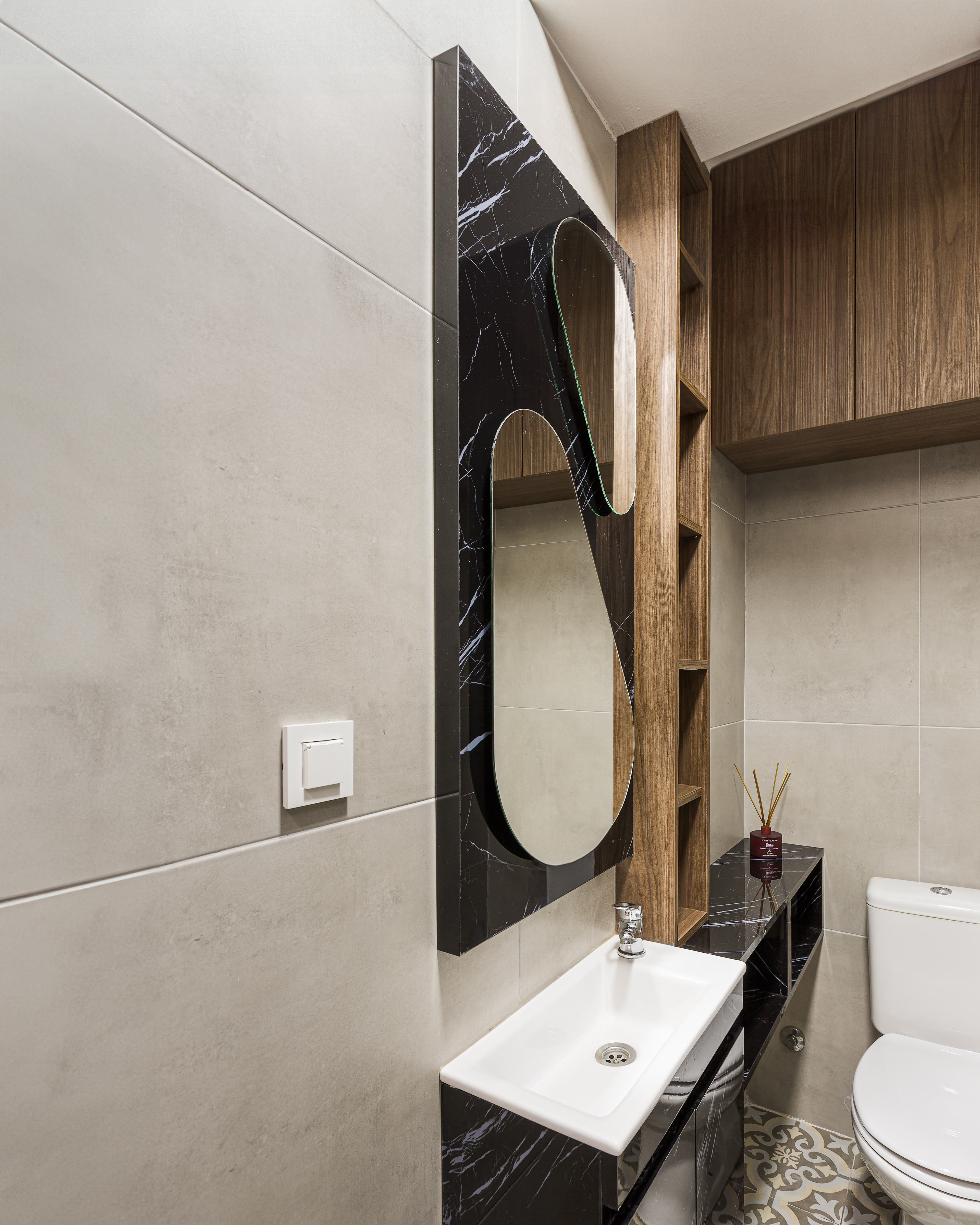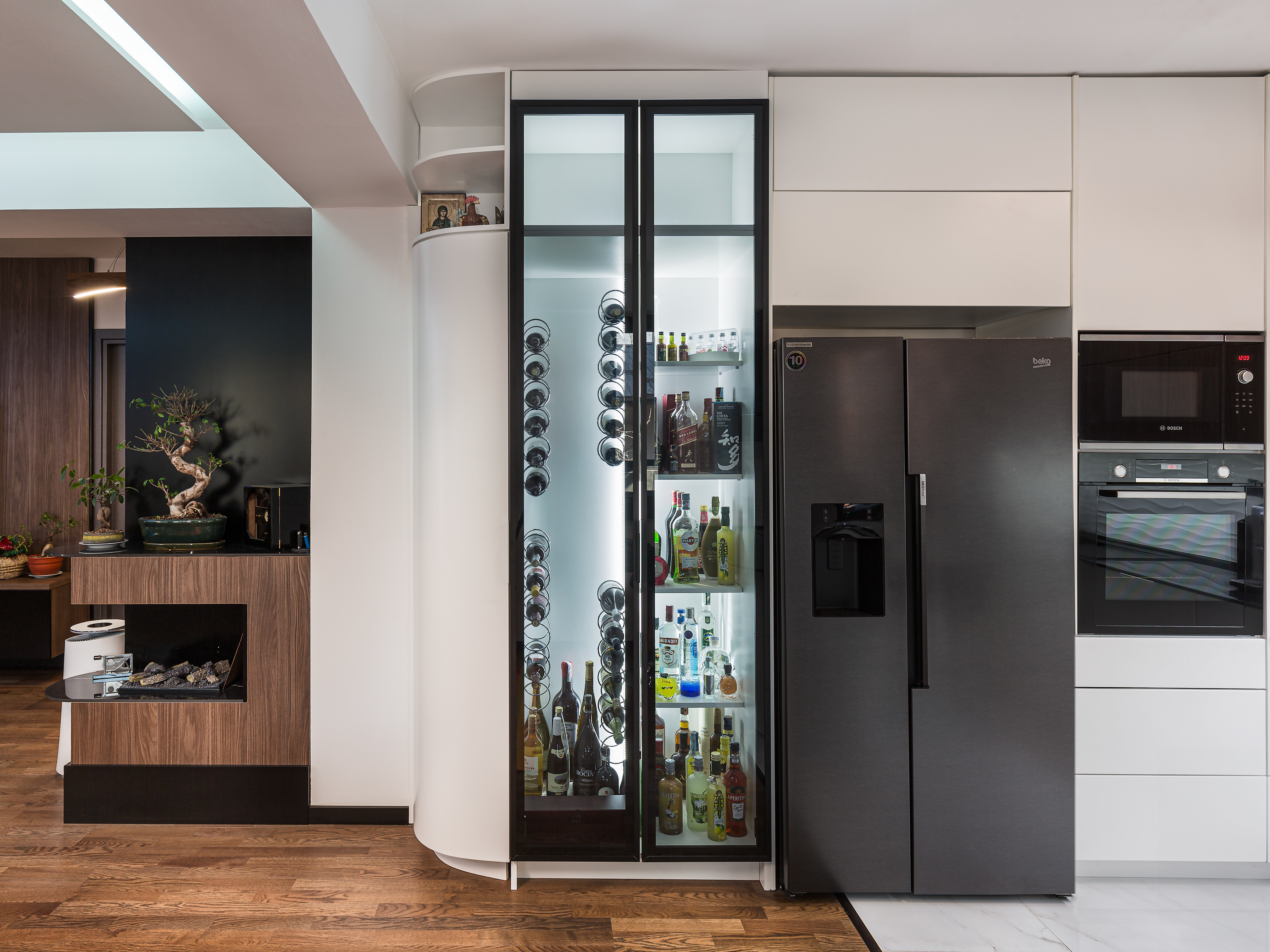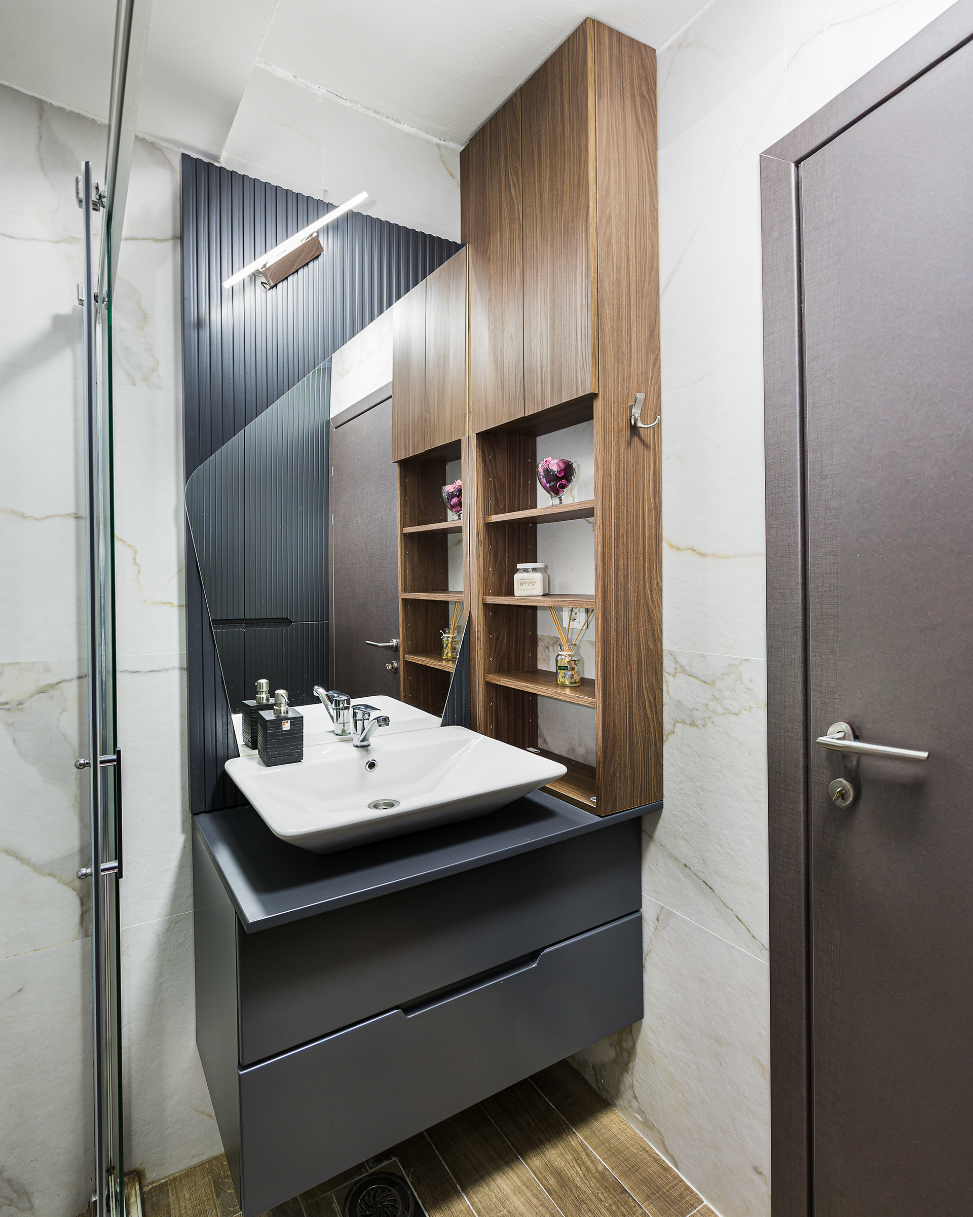 Exceptionall dark wood tones combinated with cold tones