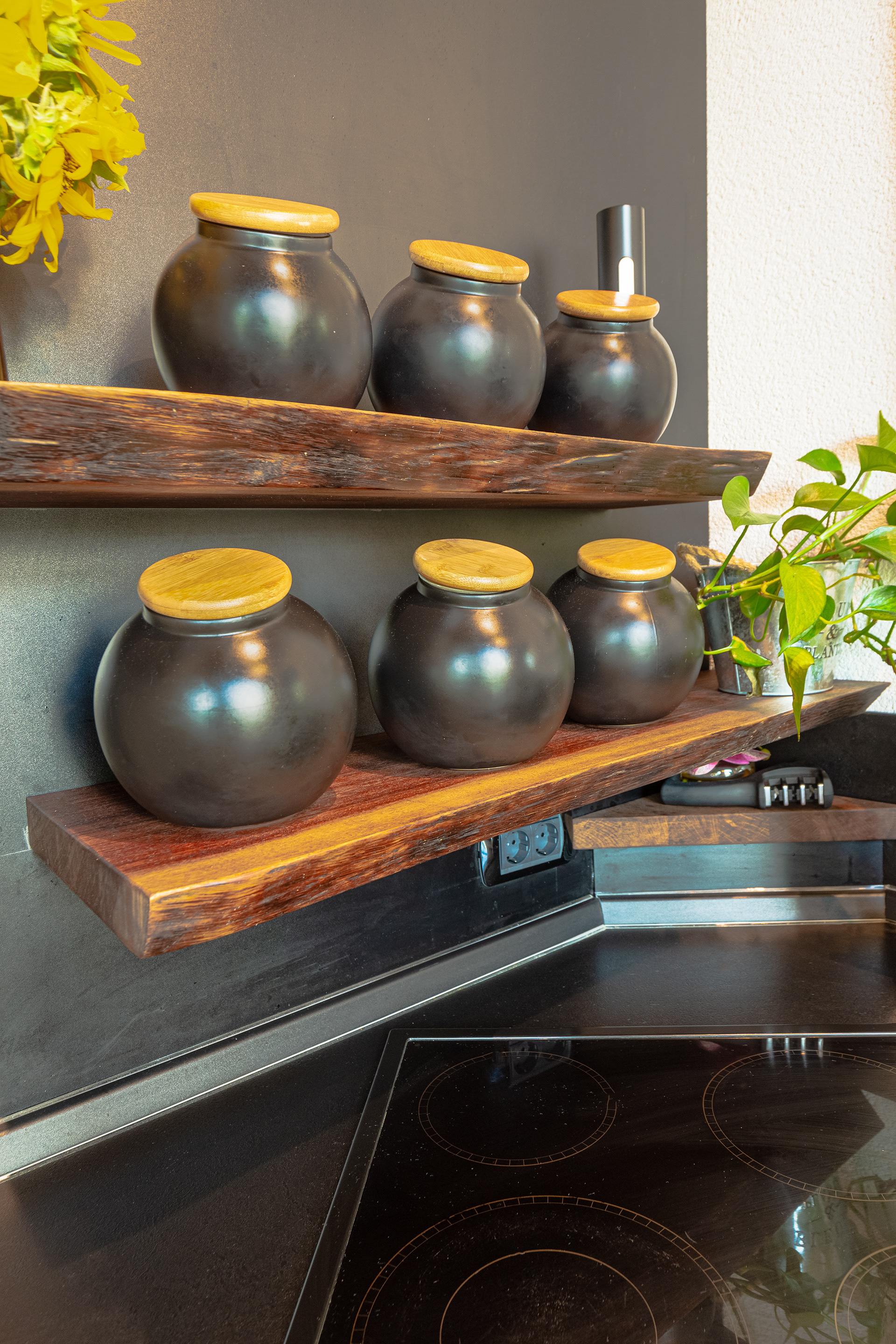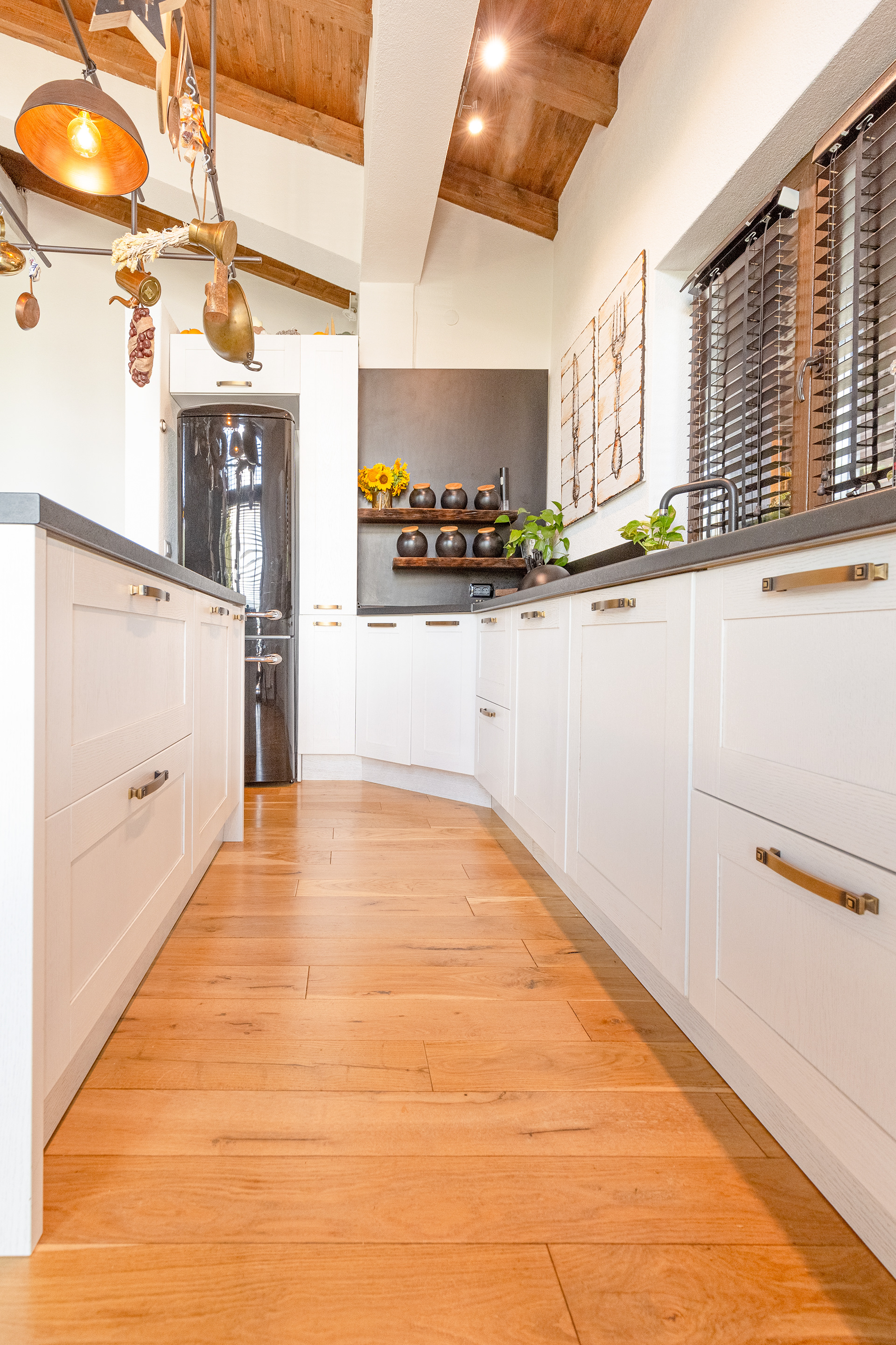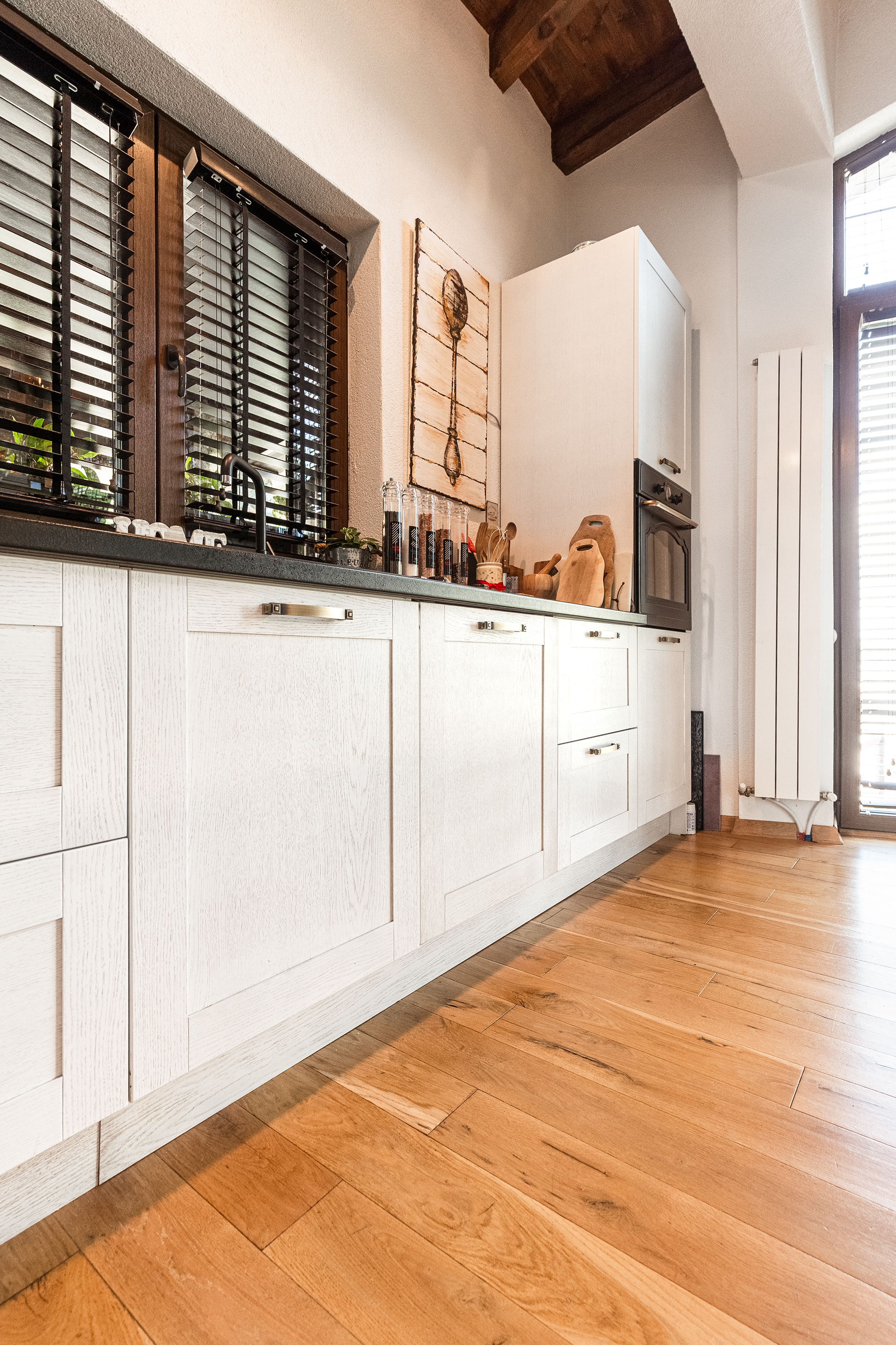 Exceptionall dark wood tones combinated with cold tones